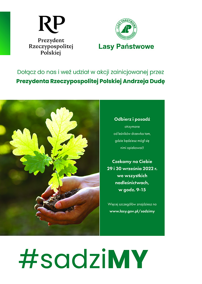 Punkt kulminacyjny akcji #sadziMY będzie miał miejsce w piątek 30 września w okolicach Nowego Sącza. Tam drzewa będzie sadziła para prezydencka. Prezydent Andrzej Duda i jego żona Agata Kornhauser-Duda nie tylko patronują przedsięwzięciu od jego pierwszej edycji, ale także sami, własnym przykładem, zachęcają do działania.