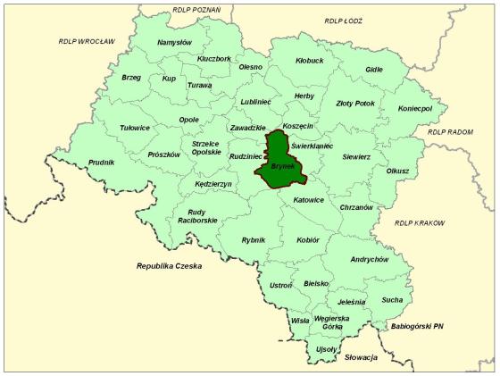 - gminy: Pyskowice, Wielowieś, Lubliniec, m.Tarnowskie Góry, Krupski Młyn, Tworóg, Zbrosławice, m.Bytom, m.Gliwice, m.Zabrze.