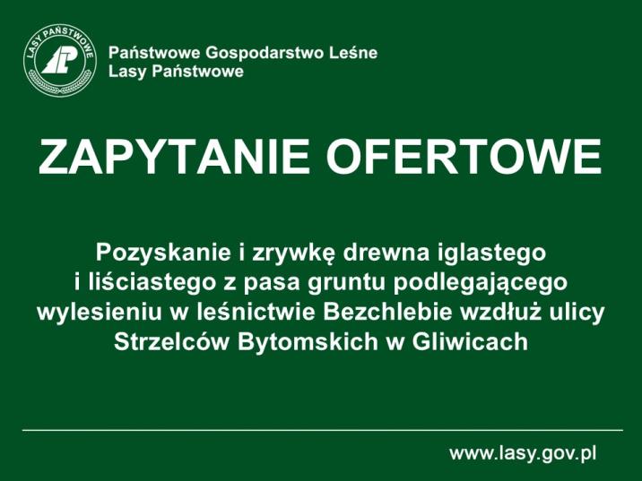 Pozyskanie i zrywkę drewna iglastego i liściastego z pasa gruntu podlegającego wylesieniu w leśnictwie Bezchlebie wzdłuż ulicy Strzelców Bytomskich w Gliwicach, na powierzchni ok. 0,63 ha.